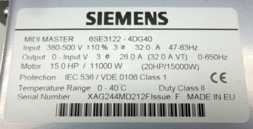 Siemens Midi Master 6SE3126-8DJ40 50HP 500V AC Drive