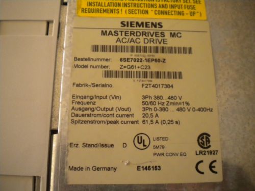 Used Eurotherm Drives 955+8R0040 DC Drive 3 Phase, 50/60 Hz, 220-500 VAC
