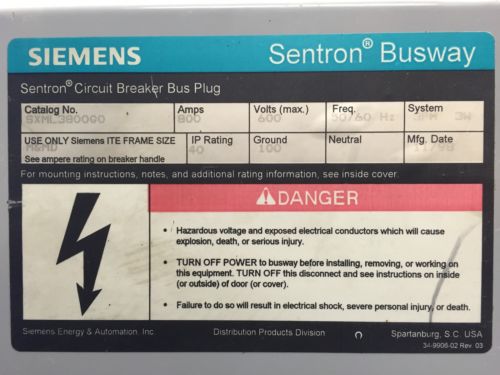 BOS14351 I-T-E BD Switch Plug 600V 30A 3PH Buss Bus Plug