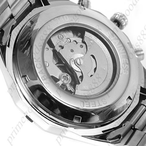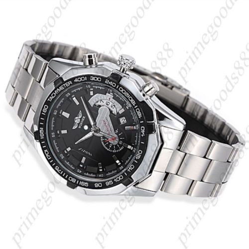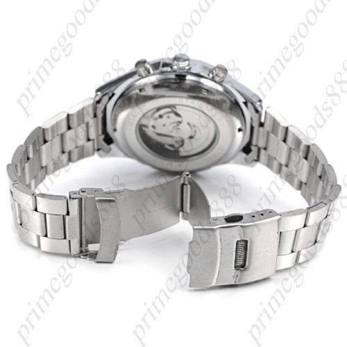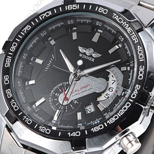 Silver Auto Automatic Sub Dials Mechanical Wrist Men's Wristwatch Black Face