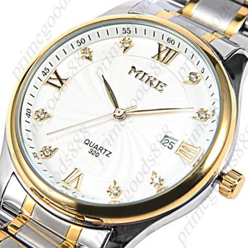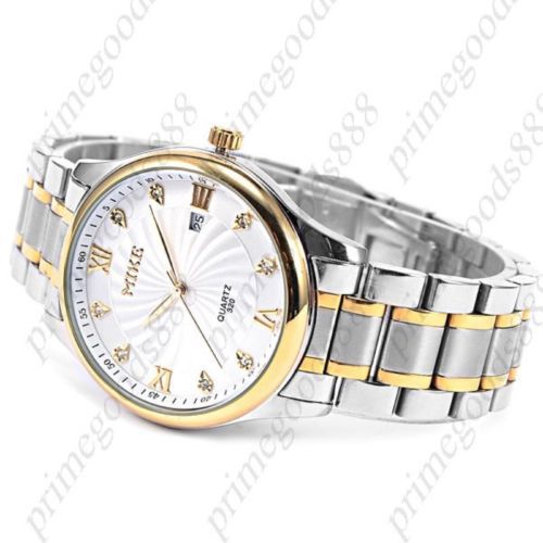 Silver Stainless Steel Date Quartz Analog Free Shipping Men's Wristwatch Gold