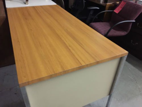 SINGLE PEDESTAL DESK by HON OFFICE FURNITURE w/ MED OAK COLOR LAMINATE TOP