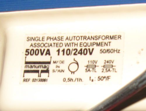 Single Phase Manumag Autotransformer 500va 110/240v 50/60hz Nos