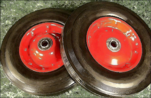 Up for auction is a very good used set of (2) /2.50-4 replacement wheels for lawnmowers & other equipment. I can't find a manufacturer but they look very similar to the Carefree brand tires that I have on another listing. These are solid tires with foam filling & roller bearings.