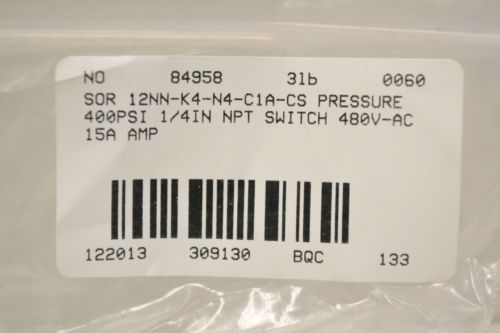SOR STATIC O RING PRESSURE SWITCH 12NN-KK4-N2-C2A-TTYY CONTROL DEVICE NEW