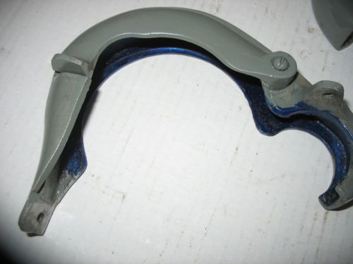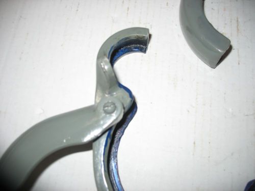 | “a set of South Bend 9" lathe headstock gear guards shields with bull gear pin cover later aluminum style. Screw holes in top of guard for electrical South Bend switch (not included), the blue is layout blue we used when fitting it to our lathe, did have to modify a hole to fit.” |