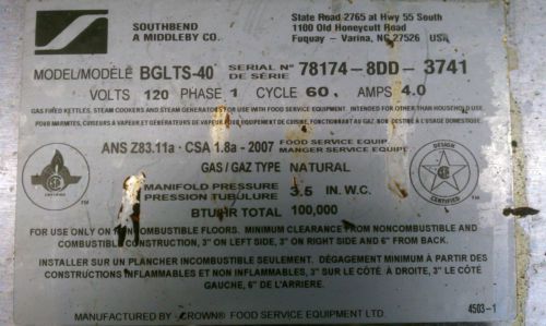 GROEN Mfg. Comapny 40 GALLON Steam Jacketed FLOOR KETTLE WORKS GREAT
