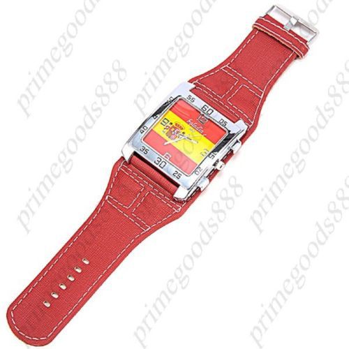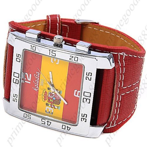 Spanish Flag of Spain Wide Rectangle Analog PU Leather Wrist Wristwatch White