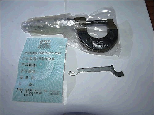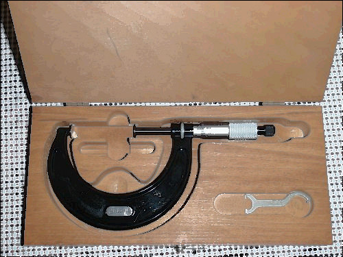Micrometer works great. HAs a ratchet stop and spindle lock. Has an inventory number etched on the frame.