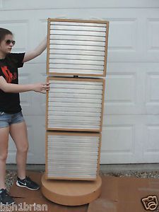 SPINNING SPINNER COSMETIC RETAIL STORE FLOOR MAKEUP DISPLAY SLATBOARD RACK WHEELS Up for your consideration is this really nice rolling and spinning retail slatboard cosmetic floor display stand. This heavy duty commercial spinner accepts standard sized slatboard hangars and can be used to display not only cosmetics but anything else that you would like to highlight. Fishing lures, e-cigarettes, tools, anything available for retail that you want to have high visibility on would be great on this spinner. It is easy to relocate in your store with its 4 duel wheel casters. This commercial display stand was used in a retail brand name clothing store for only a short time and still looks great. Please note the base section does have a chip so please take a good look at the pictures and ask questions. Please be sure to see the other items we have listed. FEATURES: Sturdy commercial retail grade display rack, 4 duel wheel casters for easy placement or relocation, sturdy 3 panel double sided upright, spins easily, each aluminum slatboard panel has 10 rows for a variety of product placement, neutral light tan wood grain formica finish, the top section is outfitted with high quality plexi-glass mirrors on top of the upright there are 2 decorative arches that are slotted and can accept your signage ADD. INFO: INCLUDED: The actual slatboard display rack pictured NOT-INCLUDED: No box, packaging or paperwork. No props used for size reference. BRAND: Unknown SIZE: The base measures about 24" in diameter x 5" tall. The overall height is 67" tall. Each slide board section is 18-1/2" wide x 17" tall. The main section of the spinning unit is 20" wide x 8" thick x 58" tall COLOR:light tan faux wood grain finish with silver/aluminum slatboard panels TYPE: Retail display case MODEL#: Unknown COUNTRY: High quality rack likely made in the USA MATERIAL: Plywood base, the upright is made from mdf board and covered in plastic laminate, some steel hardware, and aluminum slatboard panels. CONDITION:This comes to you in overall very good condition. It spins nicely and all the wheels work and roll. One mirror panel is excellent the other mirror panel has 2 very slight scratches, nothing serious. The only real mentionable are a couple large pieces of formica missing from the base. Two of the chips are smaller and less then 1" in diameter. The larger chip is about 2-1/2" in diameter and extends to the wood base below the formica however it is still solid in that part and could easily be filled or repaired or left as it is. AUTHENTICITY and your SATISFACTION are UNCONDITIONALLY 100% GUARANTEED!!! Once you get it - if you are not thrilled just let me know - I gladly accept returns. Check my feedback and buy with complete confidence I have been selling on eBay everyday for over 10 years. SHIPPING DETAILS: NO SHIPPING. FREE local Pick-Up is available - zip 60041, which is about 30 miles NW of Chicago -or- about 20 minutes west of Great America in Gurnee IL Payment in CASH is due at the time of pick-up. Do NOT use pay-pal to pay for this item. Payment is due in cash at the time of pick-up SHIPPING CONDITIONS: Do not use Pay-Pal - payment in cash is required at the time of pick-up. LOC: You really like the thing, but not so much the price... I find cool stuff, do some research and list it for what I think it's worth. Sounds pretty simple but sometimes not. So if this is something you really like but its a bit more than you had hoped to pay, then be sure to watch this because I can't send it to the bank, and if it ends without a buyer chances are real good I will drop the price and re-list it until it does sell! Two things for sure - it will get sold sooner rather than later, and that's better for both of us. International Buyers Our zip code is 60041 We will ship to most locations around the world using Priority Mail, insurance and delivery confirmation included. Unfortunately I can not ship using first class international because there is no delivery confirmation or insurance available, and ebay rules require both. "Import Duties", "Tariffs" and "Taxes" are NOT included in the item price or shipping charges. These charges are imposed and collected by your country and are your responsibility. Please check with your country's customs office to determine what these additional costs (if any) will be prior to bidding/buying. These charges are normally collected by your customs office when you pick the item up or upon delivery – please do not confuse them with shipping charges, they are not. I can NOT declare the value on the "Customs Forms" lower than it sold for or mark items as "gifts". I take a great deal of pride in my feedback rating and never want you surprised by anything you get from me. PLEASE If there is ever an issue, all I ask is that you give me an opportunity to address it BEFORE leaving feedback. Overall General Condition New Excellent Very Good Good Fair Poor Appearance Brand new and never used. No visible flaws in appearance. First quality, suitable for a gift. Like new condition. Upon close inspection some very minor signs of use or wear, but no serious flaws. Obviously used but kept in great conditional and well cared for. Expected normal signs of wear but no abuse. Clearly used allot, enough to cause significant signs of wear. See item description for more details on further future use. Used extensively, many cosmetic flaws and signs of wear. Questionable functionality Sold "AS IS" Used extensively with abundant and major cosmetic flaws. Likely non- functional. Sold "AS IS" for decorative use only. HUGE eBay STORE; If you liked this item, then you should take a look at some of the other items I have listed, some listings are "Buy-It-Now" and may even have a "best offer" and occasionally go on sale. It's a "virtual treasure trove" crammed full of 100's & 100's of old, new, odd & unusual items!! New items are added weekly. So take a minute and visit our store to see thumbnail pictures of all our items. Just cl