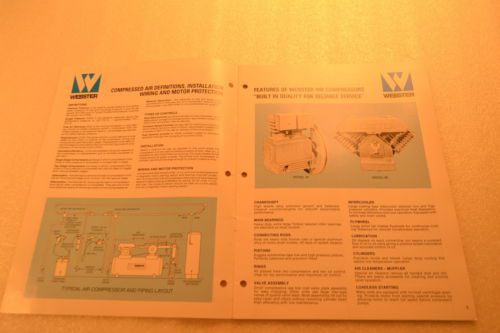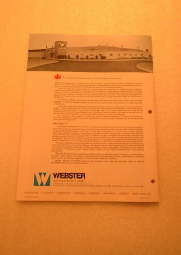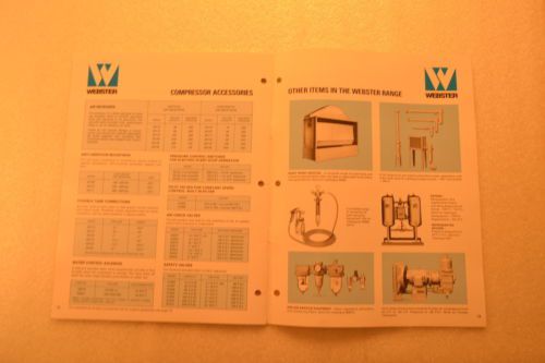 | Seller Notes | “This sale is for ONE SPRAY THE WEBSTER WAY AIR EQUIPMENT LIMITED COMPRESSORS FOR INDUSTRY CATALOG previously owned COPY (Original not photocopy) of: - shows images of different models - shows compressor selector chart and specifications - shows compressor accessories - triple punched - some discoloration and wear due handling and age” |