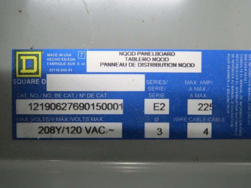 SQUARE D NQOD442L225CU BOARD 225A AMP 120/208V-AC DISTRIBUTION PANEL B430978