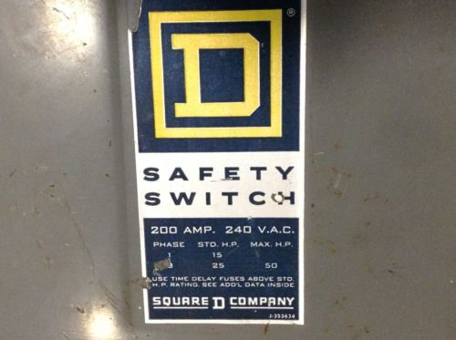 SQUARE D H364 SER. E2 200A 200 A AMP 600V FUSIBLE SAFETY DISCONNECT SWITCH