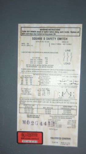 GE 400 AMP SAFETY SWITCH TH3365, 600 VAC (USED)