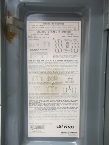Square D Disconnect Switch 240v/60a Three Phase General Duty Safety Switch Nema3