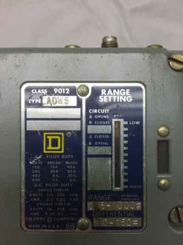 SQUARE D 9012GDW5 Pressure Switch