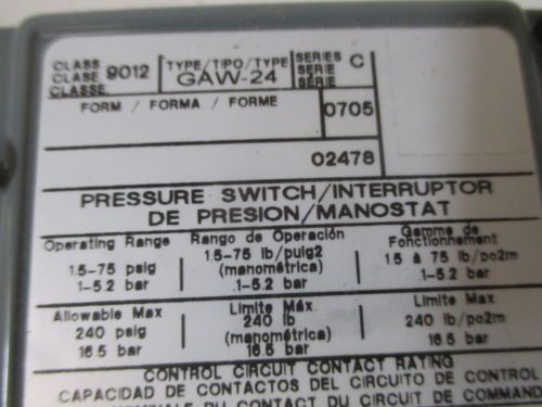 SQUARE D 9018-BSG-7 PRESSURE SWITCH *USED*