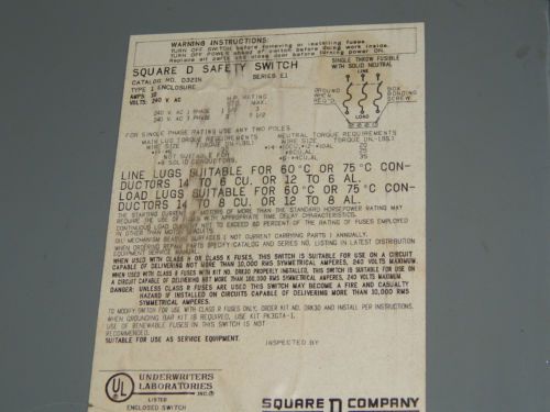 Vintage Square D Safety switch 3phase 30amp new old stock D 99311