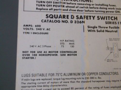 Disconnect switch Square D #H364NDS 200 Amp Nema 4X