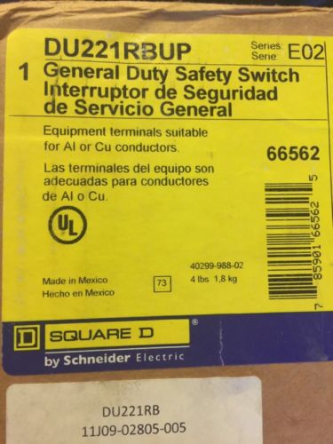 SQUARE D HEAVY DUTY SAFETY SWITCH 30A 600VAC HU361RB SERIES F05 GENTLY USED