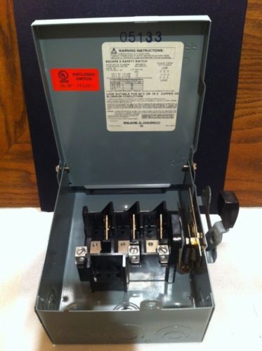 New "Square D" H-361-N 30A 600V 3 Pole Fusible Disconnect Safety Switch