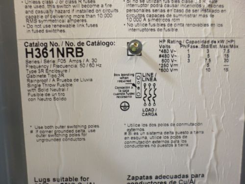 Square D H361RB 30 amp 600 volt fusible NEMA 3R outdoor disconnect ser F05