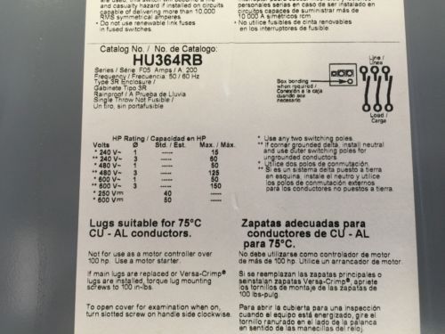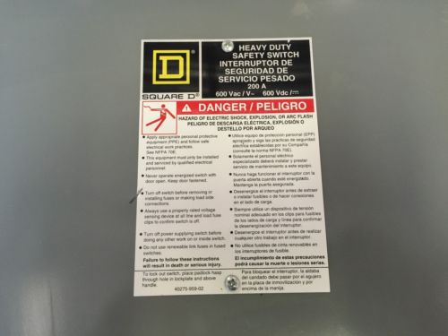 H364 Square D 200amp Fusible Disconnect 600volt