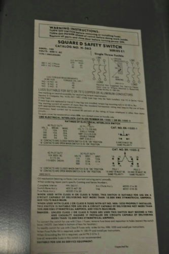 SQUARE D HEAVY DUTY H363 100 AMP 600V Fusible Safety Disconnect Switch w/FUSES