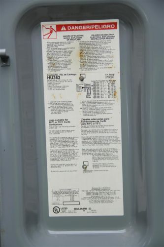 Square-D H363N Heavy Duty Disconnect Safety Switch 100A 600V Fusible, 3-Pole