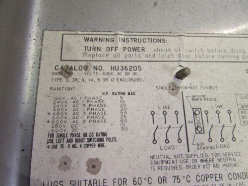 HHN 362 Murray Safety Switch 60 Amp 600 Volt