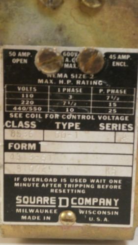 SQUARE D WATER TIGHT MOTOR STARTING SWITCH 2510 KW-1A