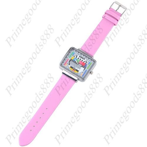 Square Plastic Hoop Bracelet Bangle Lady Ladies Quartz Wristwatch Women's Pink