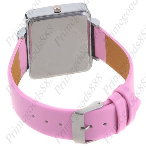 Square Rhinestones PU Leather Analog Quartz Wrist Wristwatch Women's Rose Red