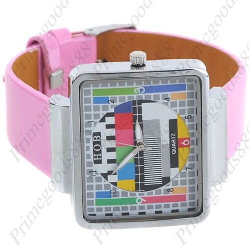 Square Synthetic Leather Lady Ladies Wrist Quartz Wristwatch Women's Black