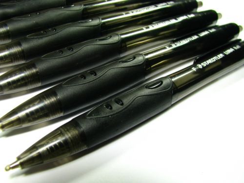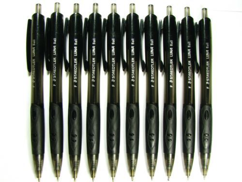 NEW STAEDTLER 10 PENS RETRACTABLE BLACK INK BARREL LUNA BALL POINT PEN 0.7 mm.
