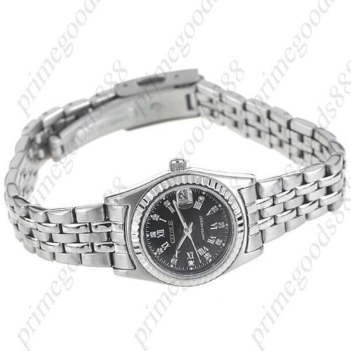 Stainless Steel Quartz Wrist Calendar Date Free Shipping Silver White Women's