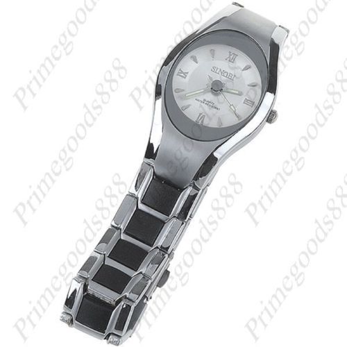 Stainless Steel Quartz Wrist Watch with Chain Band Free Shipping Black Face