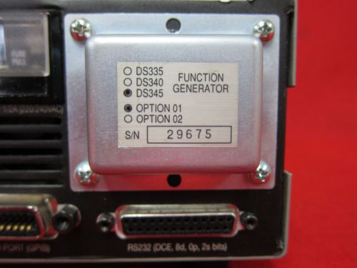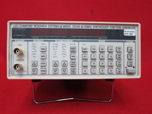 Stanford Research Systems SRS DS345 30 MHz Synthesized Function Generator W/Opt 01 More Information This item passes self-test and its in good condition and comes with our 30 days warranty. Location 21B Please read the following terms of sale carefully. These terms constitute a legally binding agreement (contract) between the seller and buyer. By bidding on, or purchasing, the product posted in this eBay listing, the winning bidder agrees to and accepts all of the terms of sale stated below. TERMS OF SALE: Only what is shown in the eBay photo and mentioned in the listing is included, anything else should be understood to not be included. For sale is for the eBay item only, no service or tech support are included, but if you have a question feel free to ask and we'll answer if we can. All sales are final, please understand that this is an auction/liquidation environment, not a retail store, so make sure the item is right for you, before bidding. PAYMENT: We accept payment by Paypal, and we only ship to the address which the buyer provides within the Paypal payment, no exceptions. If you would like to pay with a non-Paypal payment method, please contact us before bidding to see if we can arrange something. Buyers are given 7 days from winning bid to pay, and payment is expected of all winning bidders If no payment is made within 7 days, an unpaid item reminder will be filed with eBay, and the buyer forfeits the auction win. We are required by state law to collect sales tax on all items shipping to a CA address. CA sales tax may be waived at our discretion, but only with a valid CA resale certificate - please contact us for resale exception *before* sending payment. DOMESTIC (US) SHIPPING: Local pickup is normally not available; exceptions are sometimes made, but only for higher-value orders. Please contact us first to see if we can make this arrangement for you, don't assume that we will be able to. We charge flat-rate shipping, and there is no extra cost to ship to AK, HI, PR, or PO boxes, these are all fine. Shipping cost includes packaging cost including time and materials, and also includes shipping insurance (either through carrier, or self-insure); we guarantee delivery to the address you provided, or else a refund if the carrier loses the package. Smaller items will normally ship USPS and heavier items will normally ship Fedex Ground. Heavier items going to AK, HI, PR, APO/FPO, or PO boxes will ship via USPS parcel post All items must be shipped using our shipping account, we don't use anyone else's account to ship items. Packages valued $250 or more will ship with signature required upon delivery. We cannot normally offer expedited or express shipping. If this is something that you crucially need, please contact us *before* bidding to see if we can do this for you. Items will normally ship within 2 business days from the date of payment clearing (but most items will ship the next business day). You can typically expect to receive your item in under a week for smaller items, or 5-9 days for larger heavier items shipping ground delivery. Combined shipping: take $3 off shipping for each auction won after the first, if the items are paid for together. FREIGHT SHIPPING: Oversized items (150+ LBs) may be picked up locally, or may be shipped freight, but scheduling the freight shipment is buyer's responsibility. Scheduling a freight shipment may be done at freightquote.com, or another freight broker or carrier, only a credit card is required. Freight shipping is from zip code 95134, commercial location, forklift available for loading, and outgoing shipments may be scheduled from 12 noon-6pm on weekdays. We can prepare the shipment for you upon request, palletizing, strapping down, and/or shrinkwrapping, there is a $25 palletizing fee. Bill of lading must be provided to us at least 24 hrs in advance of scheduling shipment, and ship-to address must match the shipping address in your Paypal payment. INTERNATIONAL SHIPPING: International bidders, please contact us about the possibility of international shipping, prior to bidding/purchasing, not all items may be shipped internationally. International buyers are responsible for additional costs of international shipping: shipping cost and also import duties / taxes of your country of residence. International shipping cost is NEVER refundable for any reason. Please only bid if you understand this. WARRANTY: All of our Ebay items are guaranteed to arrive working normally, and they come with warranty. If there is any problem with your order we will provide a replacement item or a refund, but we ask that you return the item PROMPTLY, please try to return it within 2 weeks, and should be received by us at the very latest 30 days after when you received the package. After 30 days we cannot accept any returns, unfortunately, so please check your purchase promptly and let us know if there happens to be any issue. Buyer is fully responsible for return shipping. Items must be returned in the same condition as shipped, with all included items - returning the item damaged or dismantled will void the warranty. We do not cross-ship, or ship any replacement, before the item is returned to us. Once the item is returned, we will ship a replacement item, if it's available. If a replacement isn't available, a full refund, including original shipping & handling charges, will be given. FEEDBACK:Before leaving neutral or negative feedback, please email instead, all issues can be fixed by communicating, we prefer to have satisfied customers COMMUNICATION: All communication is by email only, not phone - please use the "Ask seller a question" link in the auction page. All reasonable emails will be replied to, please allow 24-48 hours for a response, and check your email filter if you don't see a reply within 48 hours. Saturday, Sunday, and holidays are not business days so no reply should be expected during the weekend. Thank you for your patronage.