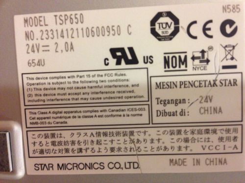 STAR MICRONICS INTERFACE BOARD PARALLEL TSP650 TSP700 TSP800 II pos