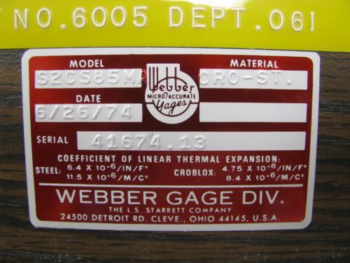 Starrett Webber S2C85MA Croblox Cro Steel 85 Piece Gage Block Set Metric ET32