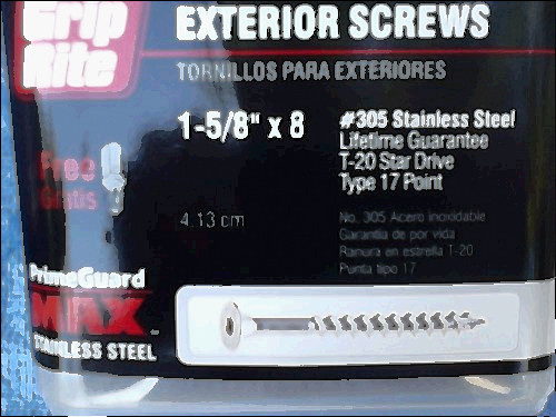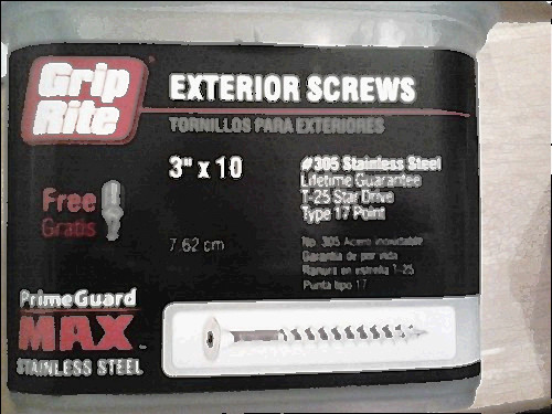 10 pounds,grip rite 3 inch stainless steel exterior screws. sq. dr. flat. in box