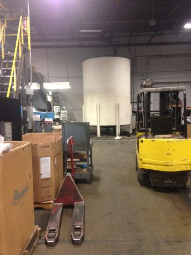 | “Used Steel Vertical Storage Tank. Used to store petroleum based printing ink. Has blind flange and venting connections on top and center drain/fill connection at bottom. Had to cut three legs to get outside but can easily be welded back on. 10'6" diameter x 13'6" long overall. PICK UP ONLY” |