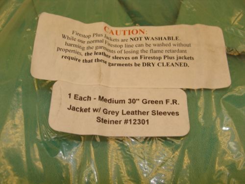 STEINER 12301 MEDIUM 30 INCH FIRE-RESISTANT JACKET W/ LEATHER SLEEVES NIB STEINER 12301 MEDIUM 30 INCH FIRE-RESISTANT JACKET W/ LEATHER SLEEVES NIB Click Photos to Enlarge Click to Enlarge Click to Enlarge Click to Enlarge Click to Enlarge Click to Enlarge Description STEINER 12301 MEDIUM WELDING JACKET NEW IN BOX ONE (1) JACKET PER ORDER SIZE: MEDIUM COLOR: GREEN / GRAY FITS CHES SIZE: 38" TO 40 " FLAME-RESISTANT JACKET W/LEATHER SLEEVES COTTON 1 POCKET INSIDE For other great deals on Construction Surplus items, Please check out our store! Our customers are our top priority; If you are not completely satisfied with your purchase or you feel like we deserve less than a 5 star rating, please call us before leaving feedback. Please note that we only ship Monday through Friday 8 am -2 pm EST (Eastern Standard Time). Any orders places or paid for after this time WILL NOT be shipped out that day. *** We are surplus equipment dealers with a wide range of products for sale. We are not experts in any particular item or category we advertise. We do not have the ability or expertise to test equipment for functionality beyond plugging it in and describing what we observe as best as we can. All statements and configurations are made to the best of our ability and with the assumption the buyer is knowledgeable and proficient in the use of this type of equipment. We give descriptions from the manufacturer's website when available, these descriptions may or may not be entirely accurate of the product listed. Due to the nature of used and surplus items, we have no history of the equipment, nor do we offer any warranty or guarantees, unless otherwise stated in the description above. We intend that photographs are part of the description.We offer a 14 day money back or exchange – buyer pays return freight *** Pictures are of the actual item, unless a stock photo is added for reference and noted in the description. Please look closely at pictures, only items shown are included. No accessories, software, and or manuals, etc. included unless stated in the description. Used items may have writing, engraving, paint, etc. that may or may not be seen in the pictures. Customer satisfaction is our top priority! E-mails will be answered as promptly as possible during business hours, however, please feel free to call us at 1-800-800-6011. We are open Monday - Friday, 8 to 5 pm. We list new item daily so check back often We Appreciate Your Business! Payment and Shipping PAYMENT TERMS: STOCK# 57109 LS6 05/2014 AB SHIPPING TERMS: PLEASE CONTACT US ABOUT COMBINED SHIPPING SO WE CAN GET YOU THE BEST RATES!!! WE ONLY SHIP TO EBAY AND PAYPAL CONFIRMED ADDRESS. This item will ship via UPS or USPS within the USA. Please use our calculator below for accurate rates. Outside of the US we ship by USPS, but on some occasions these items are too heavy are too large for USPS and FedEx is the only option. WE ARE NOT RESPONSIBLE FOR ANY CUSTOMS FEES! We ship daily, Monday through Friday. Please be patient, your tracking number will be uploaded to your eBay account as soon as your package is scanned. We take pride in packaging each item securely and shipping quickly. WE DO OFFER COMBINED SHIPPING RATES TO SAVE YOU MORE! Combined rates are based on the final total shipping weight and the buyers zip code. Please let us know if you are bidding on more items, and WAIT TO PAY until a final invoice is sent for the best rate. We accpet Paypal, and all major credit cards by phone. inkfrog terapeak i000000 inkFrog Analytics For other great deals on Construction Surplus items, Please check out our store! Our customers are our top priority; If you are not completely satisfied with your purchase or you feel like we deserve less than a 5 star rating, please call us before leaving feedback. Payment We accept the following forms of payment. PayPal Sales Tax For shipments to South Carolina addresses, we are required by State law to collect 6% Sales Tax. Shipping Please note that we only ship Monday through Friday 8am -2 pm EST (Eastern Standard Time). Any orders places or paid for after this time WILL NOT be shipped out that day. WE ONLY SHIP TO EBAY AND PAYPAL CONFIRMED ADDRESS. This item will ship via UPS or USPS within the USA. Please use our calculator below for accurate rates. Outside of the US we ship by USPS, but on some occasions these items are too heavy are too large for USPS and FedEx is the only option. WE ARE NOT RESPONSIBLE FOR ANY CUSTOMS FEES! We ship daily, Monday through Friday. Please be patient, your tracking number will be uploaded to your eBay account as soon as your package is scanned. We take pride in packaging each item securely and shipping quickly. WE DO OFFER COMBINED SHIPPING RATES TO SAVE YOU MORE! Combined rates are based on the final total shipping weight and the buyers zip code. Please let us know if you are bidding on more items, and WAIT TO PAY until a final invoice is sent for the best rate. We accpet Paypal, and all major credit cards by phone. We are surplus equipment dealers with a wide range of products for sale. We are not experts in any particular item or category we advertise. We do not have the ability or expertise to test equipment for functionality beyond plugging it in and describing what we observe as best as we can. All statements and configurations are made to the best of our ability and with the assumption the buyer is knowledgeable and proficient in the use of this type of equipment. We give descriptions from the manufacturer's website when available, these descriptions may or may not be entirely accurate of the product listed. Due to the nature of used and surplus items, we have no history of the equipment, nor do we offer any warranty or guarantees, unless otherwise stated in the description above. We intend that photographs are part of the description.We offer a 14 day money back or exchange – buyer pays return freight *** Pictures are of the actual item, unless a stock photo is added for ref
