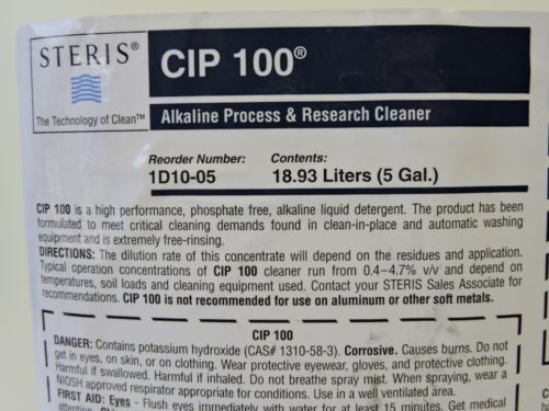 Steris CIP 100 Alkaline Process & Research Cleaner Alkaline Detergent 1D1005 Click to Enlarge Click to Enlarge Click to Enlarge Description : Steris CIP 100 Alkaline Process & Research Cleaner Alkaline Detergent 1D1005 5 Gal NEW Condition: New. NO RETURNS ACCEPTED. Includes: Everything as shown, nothing else is included Photos are of one of the actual units available **** Please verify that this part number will work for your application before purchasing **** All items are guaranteed to be in the condition as stated but are otherwise sold As-Is. CHECK OUT OUR OTHER LISTINGS ADD US AS A FAVORITE SELLER FAST SHIPPING !! with insurance and Tracking # Terms of Sale -What You See is What You Get If the item up for sale is tested, we will state so clearly. We have such a large array of items that we are not always able to test everything. If an item ships with any software or accessories, it will be clearly stated in the item description, and pictured. Always look at the pictures to see what is included in each auction or sale. If it is not in the item description, and it is not pictured, it is not included in the auction. -Bidding & Buying Your bid is a contract - Place a bid only if you are serious about buying the item. If you are the winning bidder, you will enter into a legally binding contract to purchase the item. If payment is not received within 7 days or we are not contacted for payment arrangements within 5 days, the item may be offered to the next highest bidder, or relisted at our discretion. Sales Tax will be charged to all items shipped within Utah at 6.875%. -Payment We accept payments through PayPal only. We accept credit cards through PayPal, though you do not have to have a PayPal account to pay with a credit card. When paying with a credit card without a PayPal account, just click on the pay now button once you receive your invoice and you will be redirected to the PayPal website. Once you are there if you look toward the bottom of the screen there will be a place you can click that says something like "click here to pay with a credit card without a PayPal account". -Shipping & Pickup Shipping prices quoted are for the lower 48 USA unless otherwise stated. We use FedEx for most packages over 2 lbs. and the US Postal Service for most packages under 2 lbs. on domestic shipments in most cases. If your address is a PO box and the package is over 2 lbs it will most likely ship FedEx, we will request that you give us your business or residential address to ship to instead. Items over $250 including shipping, will require additional shipping charges to PO boxes and will require a signature and proof of identification upon pick-up. Be sure to double-check your shipping address. If an item gets sent back to us because of an incorrect address, you must pay to have it shipped again. If we send the item to the wrong address because of an error on your part, we cannot issue you a refund. Again, check the shipping address that both eBay and PayPal have on file for your account. If either is incorrect, correct the information before bidding to ensure you receive the item without any issues. We will not declare merchandise values below their actual value, nor will we mark items as "gifts." -United States and international government regulations prohibit such behavior. We love local pickups! Let us know when you're coming so we can get your item ready. -International Shipping International buyers are welcome! The shipping price listed applies to the continental United States only. Please contact us using the messaging system provided by eBay for international shipping quotes prior to bidding. We ship internationally using FedEx and the United States Postal Service. International buyers, please note: Import duties, taxes, and charges are not included in the item price or shipping charges. These charges are the buyer's responsibility. Please check with your country's customs office to determine what these additional costs will be, prior to bidding or buying. These charges are normally collected by the delivering shipping company, or when you pick up the package. -Do not confuse these for additional shipping charges. -Refunds & Returns We will make every attempt possible to resolve the issue if we made a mistake, (It happens). Please do not assume a mistake is intentional. Our return policy varies from item to item. If we are offering the option to return, we will state so clearly. We try to describe every item accurately, so that there is no question in regard to the condition and known functionality of the item. If we are accepting returns on an item, it must be returned in its original box, with all packing materials. If it is factory sealed, it must be returned factory sealed. We stamp all items with an ultraviolet (invisible) ink stamp. This stamp does not affect the functionality or value of the item. Upon receiving your returned item, we will use this stamp to verify that it is the same item which was originally sent. Shipping charges are non-refundable. Return postage is the buyer’s responsibility, without exception. Items being sold "as-is" are non-refundable. If you feel uneasy about bidding on an item that is being sold as-is, you may contact us with any specific questions you have, or simply buy a similar item from another source. Losing a sale costs everyone less time, money, and hassle than accepting returns and issuing refunds on as-is items. We appreciate your cooperation. If you receive an item from us, and it does not arrive in the condition described in the listing, please contact us so that we may resolve the issue. Please do not open a case with eBay. We guarantee that we will do all we can to satisfy you. -Leaving 5 Star Feedback 5 star ratings across the board is our goal. 100% customer satisfaction is our goal. We use an automated eBay feedback response system. If you are happy with the product, please leave positive feedback and we will automatically leave positive 