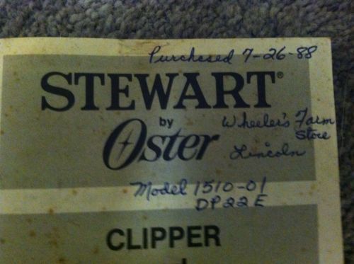 Sunbeam Stewart Clipmaster 510 510A Clippers Horse Goat cattle Shears OSTER