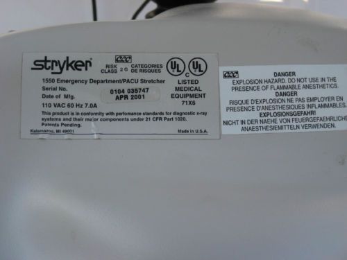 Stryker 1550 Electric Stretcher Emergency Department PACU Gurney w/ Mattress