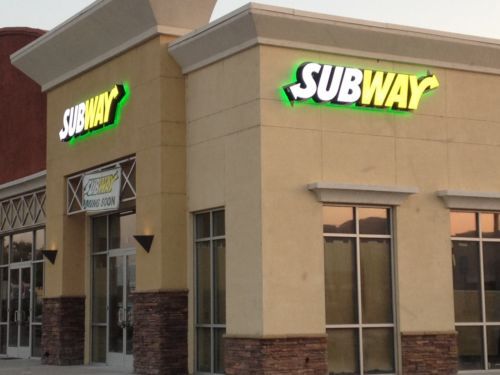Cyber Monday SUBWAY 16x66 LED Channel Letter Sign with Green Backing/Halo Effect