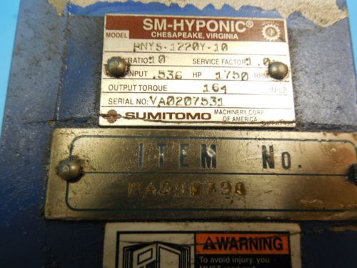 SUMITOMO RNY-1220Y-10 HYPONIC REDUCER HP: .536 RATIO: 10 RPM: 1750 SF: 1.00