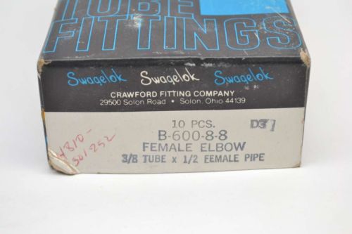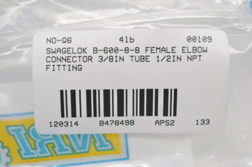 SWAGELOK B-600-8-8 FEMALE ELBOW CONNECTOR 3/8IN TUBE 1/2IN NPT FITTING B478503