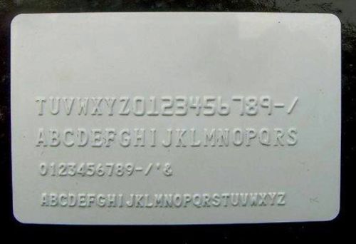 template Szwter PVC ID cards 80C 80 Convex Manual PVC ID Credit Card Embossing & Indenting Embosser Machine we have Hot Foil Stamping Machine Fast shipping DHL OR EMS New CE Certification,ISO9001 Quality Certification 80C model: Applies workpiece: Normative PVC card, That be 85.5mm x 55mm 1?Character-selection: character rosette turnplate 2?Offers a total of 80 characters word: The font size of capital letters (52) The size of the Arabic numerals (20): 0-9 Small symbols (4): & '- / Large symbol (2): - / Modify flatten operator (2): ?? 3?Character In accordance with ISO international credit card standard 4?3 gears for word spacing gap 1/7 1/10(only for small characters) 1/12 (for 0-9 italics numbers) 5?Operations:manual 6?Raised type lines: 1-11 lines 7?Raised type location indication:indicator and sample card 8?Volume(LxDxH):339x269x165 (mm) 9?Net weight of the machine:9 kg Manual card embossing & Indent machine is the necessary equipment at the end of the process of producing PVC card, this device, which is used to press out the outstanding letter of alphabet and numerals on the surface of PVC card, makes PVC card to be identified or exclusive. The manual and electric type of the machine on the market is two kinds of, Manual machine is cheaper and easier to use, so medium and small companies of producing card use it. PVC manual embossing machine has characteristics of reliable structure, accurate orientation, small bulk, laconic exterior and convenient operation. PVC Card Embosser is the necessary equipment at the end of the process of producing PVC card, which is perfect for personalization of your VIP cards, club cards, membership Cards, gift cards etc. It makes PVC cards identified or exclusive by printing convex characters on them. This Manual PVC Card Embosser Machine we offer has the characteristics of heavy duty reliable structure, accurate orientation, small volume, beautiful appearanceand convenient operation. Compared with electric embossing machines, this manual machine is more economical and better suited for small batch or personalization jobs. 4. Use of the Machine A?Preparation Work 1. Insert the handle (5) into the axle hole in the right of the machine, and screw on the fastening screw (6). 2. Pull the card framework (4) to the outermost, and put in the required card sample as needed. 3. Insert lean the card to be imprinted into the metal slot in the front-end of the card framework, gently push ahead, and press down the card to put in the metal slot in the front-end of the card framework. B?Row Spacing Selection According to different models, there are 1/7inch, 1/10inch and 1/12inch to choose for the transverse pitch among the imprinted characters, the selection of the character transverse pitch can be finished by turning the word spacing adjusting knob (7). 1/7inch position is the large character spacing; 1/10inch is the small character spacing; 1/12inch is italics spacing (these spacing is available only in concave code printer and Embossing & concave code printer models.).When uses the Embossing & concave code printer molding machine, needs to choose when 1/7inch and the 1/12inch character is apart from the gap, must first the character distance adjust Niu (7) to change 1/7inch and inch 1/10,or the 1/12 inch place, then instigates in front of the machine the side character to be apart from the adjustment to dial the change-over switch (8) to choose 1/7 inch and 1/10 inch or the 1/12 inch character is apart from the gap.The fore-and-aft distance uses the fixed gap, each gap is tooth /20inch, may gently on rollers card frame (4) choice. It can use the fixed gap for the longitudinal separation, 1/20inch for each gap, pull and push the card framework (4) to select. C?word-selection positioning coding 1. Turn the code-selection plate (1), and turn the required imprinted character to the character pointer (2). 2. Gently push and pull the card framework (4) for the up-down position-selection of the card. 3. For the left-right selection of the card, move right can be finished by directly gently the framework (4); move left, you can gently depress the handle (5) (about at 15 degree), then reset, and the framework (4) can move one space left; after the above operations, the card can be set in the imprinted position. 4. The card imprinting is taken from left to right, it will automatically move one space left after each character is imprinted; press 3 for the blank. 5. Imprint the character: to operate the handle (5), push to down, and then reset. 6. If the imprinted character may be deeper or shallower, undesirable, then it can be adjusted by adjusting screw in the regulating port located in the bottom of the machine. Regulation means: use the Z outside-hexagonal spanner along with the code sprinter to a little loose the hold-down nut, and then inside-hexagonal spanner with the code sprinter to adjust the middle regulating screw. Attention: turning the regulating screw in clockwise may deepen the typed characters while clockwise turning may lighten the typed characters. After finishing, please use the inside-hexagonal spanner with the code sprinter to make the regulating screw stable, and then use the Z outside-hexagonal spanner to fasten the hold-down screw. D. Error Correction If you need modify the characters, you can select ? or ? to modify according to the concrete requirements. When modifying the small character, please use ? to press small characters flat. When modifying the large character, please use ? to press largely characters flat. Same operations to the coding methods, after smoothing, impress the required character again in the original position. 5. Considerations 1.Be sure to take great care of the pointing position of the row spacing ruler (2) when you beating code onto the cards. forbid press the handle(5) when the instructed region is not in the effectual region in order to avoid the stencil-piate to be damaged. 2.When you rotate the code disk.don`t press dow
